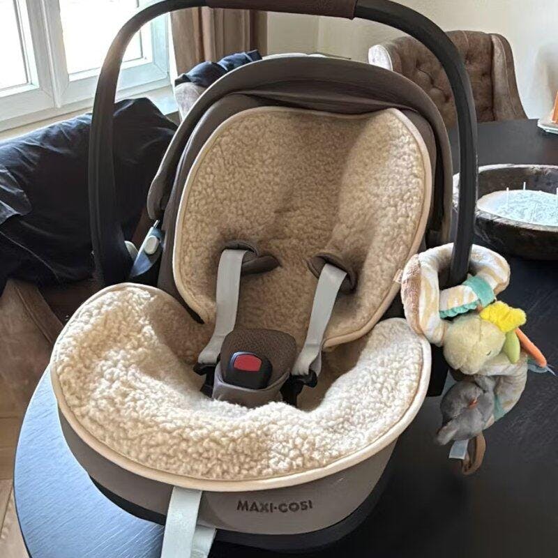 Turn every trip in the stroller or car seat into a soft and safe experience with this reversible insert made from 100% merino wool. Your child avoids the discomfort of being placed in a cold seat – the soft surface feels warm right away. The liner provides your child with a comfortable, temperature-regulating base – no matter the season. The shape is adapted to the child seat and has holes for the harness. Suitable for combination prams, strollers and car seats (such as Maxi-Cosi).