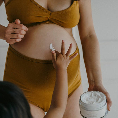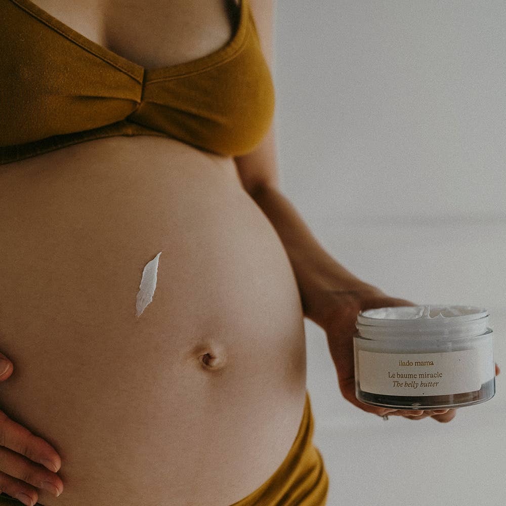 Miracle Balm – a certified organic body balm that provides intense nourishment and soothes the skin during and after pregnancy. Relieves tightness, boosts elasticity, and helps prevent stretch marks—with a luxurious texture that melts in without feeling greasy.