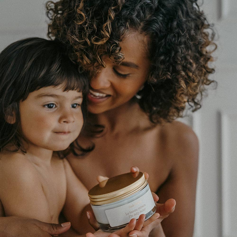 Miracle Balm is specially developed to care for your skin before, during, and after pregnancy. Its effectiveness comes from a synergy of 7 exceptional organic oils, inspired by mothers’ care rituals from around the world. Massage it into your skin daily to instantly relieve tightness and discomfort, prevent and visibly reduce stretch marks, and restore your skin’s suppleness and elasticity. Effectiveness documented under dermatological control.
